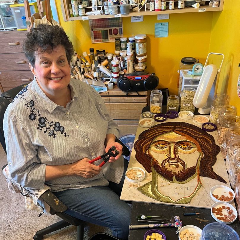Fast forward to 2008 when I was hanging out a great deal with our then Anglican Bishop, John-David Schofield, who had become my spiritual Dad. If you had ever visited his place, you knew that he had icons all over his house from all over the world. I used to comment on them and wish that I could do something as beautiful as them. He said, ‘You can!’ in his bright and chipper way. He showed me some icons that friends of his had done thru an icon class taught at our old retreat center just below Yosemite and they were really good. He encouraged me to take a class from a friend of his who taught iconography. I was convinced that I couldn’t create that sort of beauty after a lifetime of family and teachers telling me I couldn’t draw. After a 3 year long pep talk from him, I finally screwed up my courage and signed up for a class with the icon teacher in 2011, who was in his diocese at an Anglican church in Bakersfield, CA . That was 13 years ago and I haven’t looked back. In fact, I am now doing mosaic icons as well and hope to start working on bas relief icons in clay this summer.